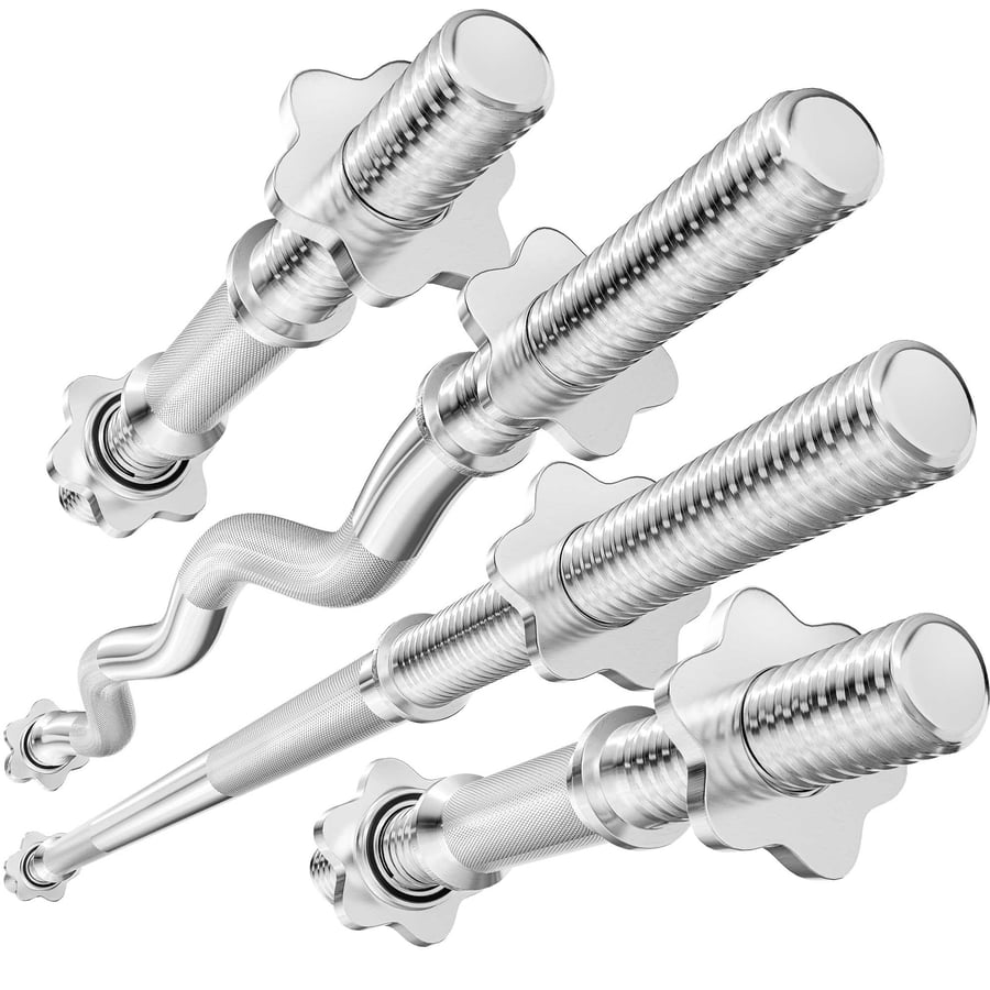 Ensemble de barres de musculation avec barre droite 167 cm, barre SZ 120 cm et barres d'haltères courtes Ø 30 mm avec filetage à vis, 8 fermetures en étoile incluses.