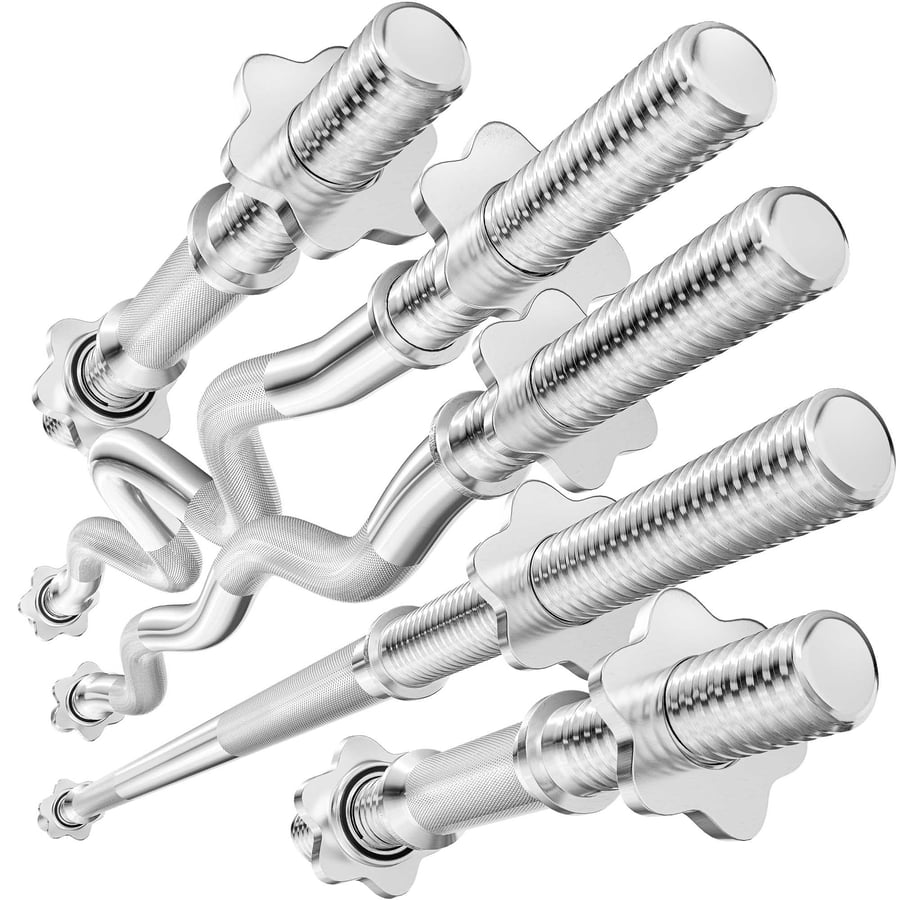 Ensemble de barres de musculation avec barre droite 167 cm, barre curl SZ, super barre curl SZ 120 cm et haltères / 30 mm avec filetage à vis, incluant 10 fermetures étoiles.