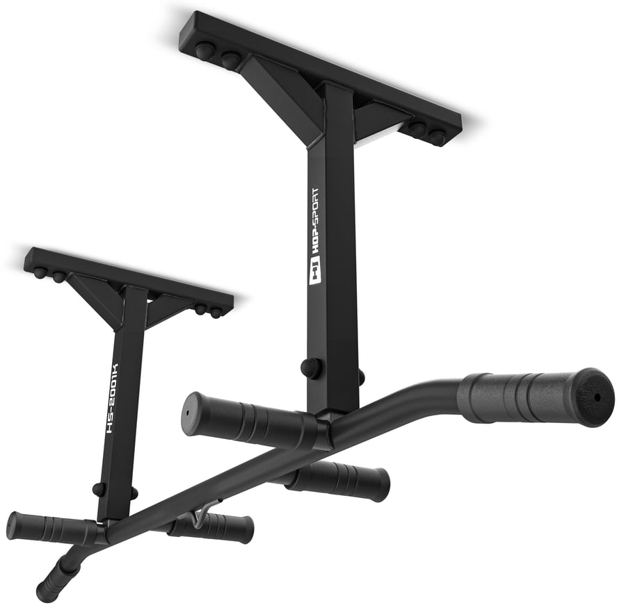 Barre de traction de plafond HS-2001K Hop-Sport. Fixation solide au plafond, capacité de charge jusqu'à 210 kg et 6 poignées antidérapantes pour un entraînement sécurisé.