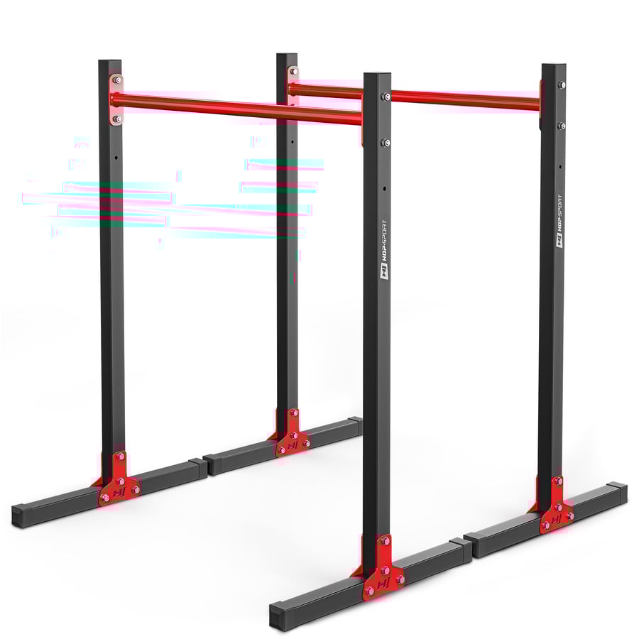 La structure de la station à dip HS-1011K est fabriquée en acier carré de haute qualité (38 x 38 mm), recouvert d’un revêtement en poudre pour la protéger des dommages extérieurs et de la corrosion. Les barres de maintien, en acier tubulaire de 30 mm de diamètre, sont recouvertes d’une peinture rouge à forte adhérence, garantissant ainsi une longue durée de vie à la station.