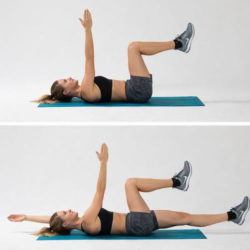 Nous pouvons ajuster facilement le niveau de difficulté selon notre expérience ou notre état de forme du jour. Pour une version plus accessible, nous gardons les bras posés au sol le long du corps et ne bougeons que les jambes, une par une. Nous pouvons aussi garder les genoux un peu plus proches du torse. Cela réduit le bras de levier, soulage les lombaires et permet de nous concentrer sur le maintien du bassin.