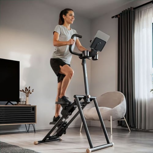Au niveau intermédiaire, nous ajoutons mountain climber, planche latérale, squats et fentes avec engagement volontaire du centre. Nous pouvons jouer sur la vitesse et les amplitudes pour moduler l’intensité. Au niveau avancé, nous intégrons des mouvements plus dynamiques, comme les burpees, les sauts groupés ou les planches avec rotation de buste pour solliciter davantage le cardio. Ces exercices pour perdre du ventre et solliciter tout le corps augmentent nettement la dépense énergétique. Pour celles et ceux qui apprécient les séances structurées, un vélo d'appartement ou un vélo elliptique aide à installer facilement un bloc cardio, autour duquel viennent se greffer les exercices abdominaux.