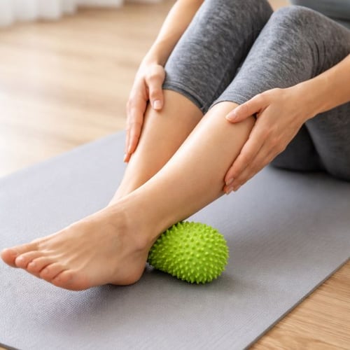 Auto-massage du bas de la jambe avec balle ou rouleau