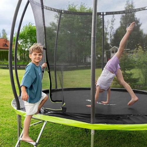 Il est également important de vérifier la charge maximale supportée par le trampoline. Si plusieurs enfants sont susceptibles de l’utiliser, ou si des adolescents, voire des adultes, souhaitent s’en servir pour quelques exercices simples, nous avons intérêt à choisir une marge de sécurité confortable. Un modèle comme le Trampoline de jardin 10FT illustre bien ce type de configuration. Son diamètre généreux offre un rebond fluide, tout en restant compatible avec un jardin familial de taille moyenne.