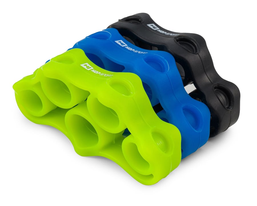 Le set de hand trainers 3 pièces - taille S HS-S003FT de Hop-Sport aide à renforcer les muscles des mains. L’ensemble comprend trois anneaux en caoutchouc de couleurs différentes et offrant des niveaux de résistance variés. L’entraînement avec ces hand trainers est une excellente aide à la rééducation et à la récupération après une blessure. Grâce à leur forme ergonomique, ils s’adaptent parfaitement à toutes les mains.
