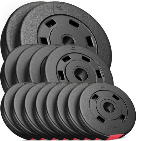Les poids en plastique offrent de nombreuses options d'entraînement. Vous pouvez les utiliser avec une barre droite, courte, curl Z ou Super curl-Z. Ils sont également parfaits pour des exercices libres sans barre, tels que le soulevé de terre, les étirements ou les squats.