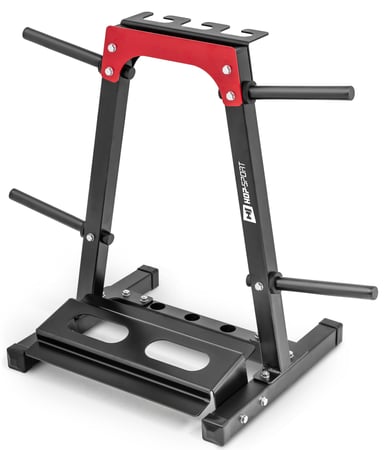 Vous ne pouvez pas imaginer un entraînement sans haltères? Grâce au support HS-1008A, vous avez un espace spécialement conçu pour les ranger. Située en bas du support, l'étagère peut accueillir deux haltères ayant une poignée d'au moins 12 cm de long.