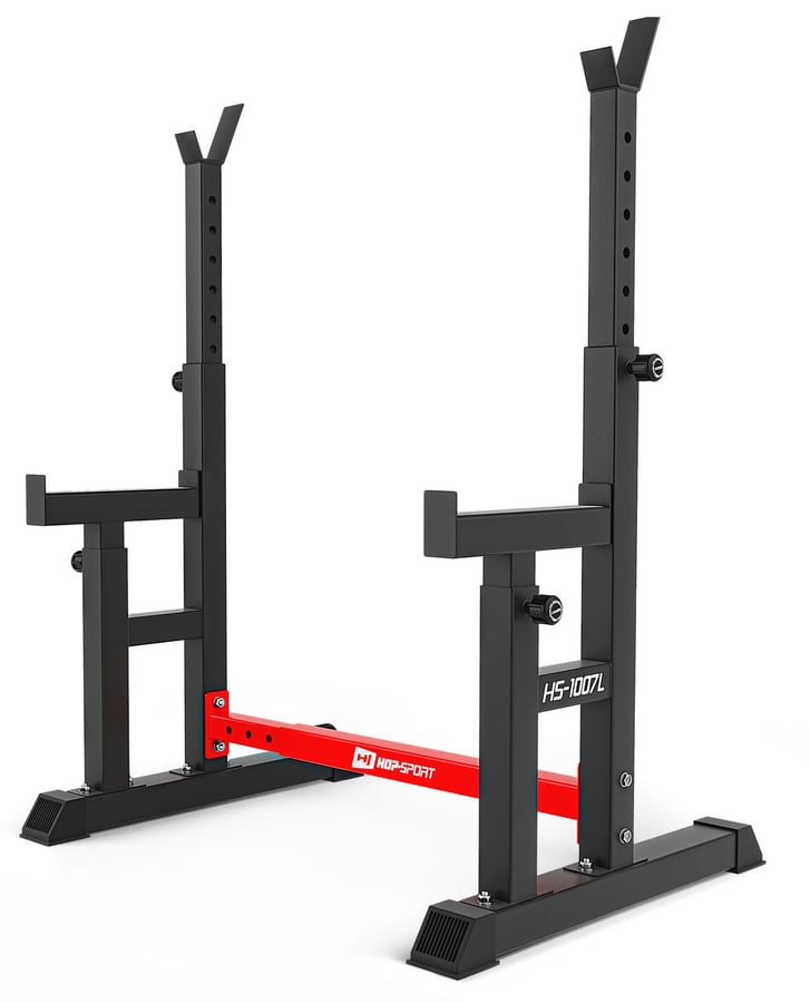 Les supports HS-1007L de Hop-Sport sont idéaux pour les exercices indépendants avec une charge lourde. Les réglages (des supports, de l'assurage, de la largeur de l'espacement) permettent de l'adapter aux préférences individuelles. Le dispositif d'assurage garantit la sécurité lors de l'entraînement en solitaire. Grâce aux supports, vous pouvez effectuer un large éventail d'exercices: développé couché, squats ou rowing avec haltères. La construction solide et durable des supports garantit la sécurité avec une charge allant jusqu'à 400 kg.