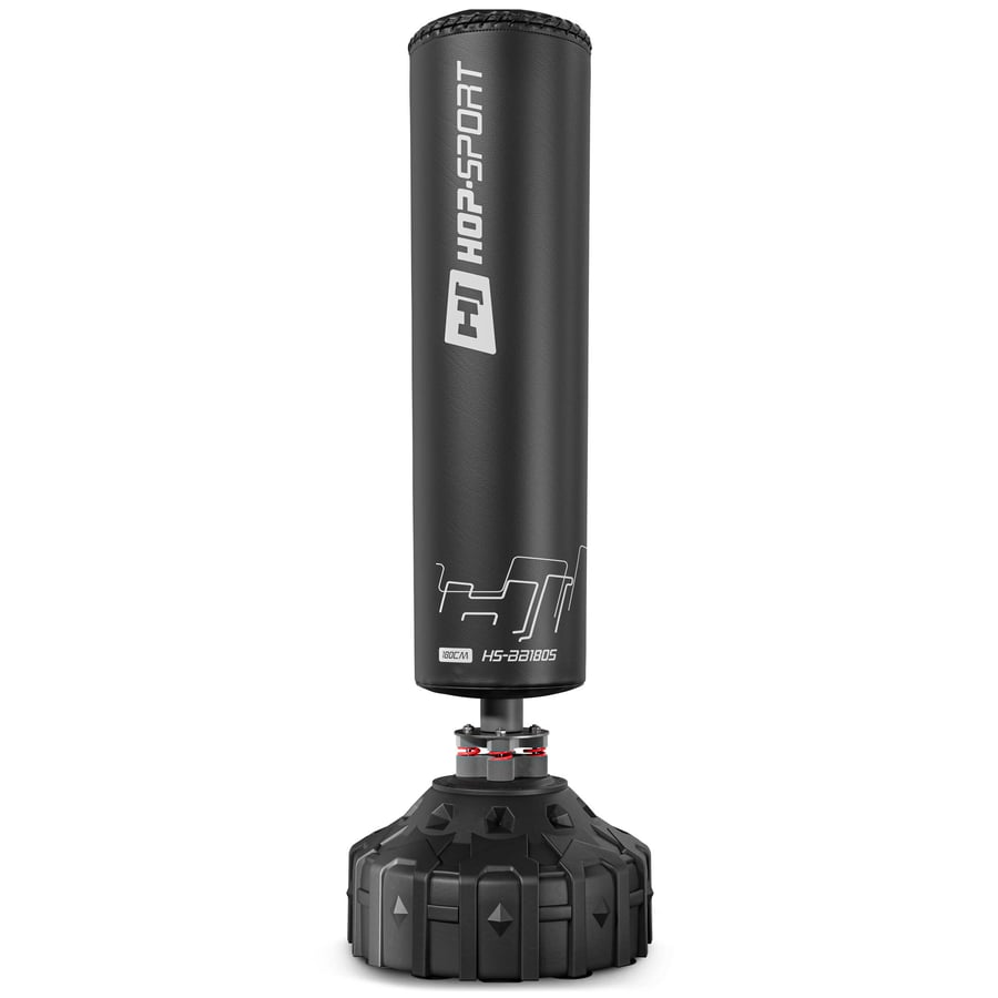 Le sac de boxe autoportant Hop-Sport (180 x 32 cm) est idéal pour les arts martiaux et les exercices de renforcement musculaire. Grâce aux innovations telles que le système anti-choc, les ressorts de la base et la rotation à 360 degrés, il offre un entraînement efficace et sûr sans besoin de montage au plafond, requis pour les sacs de frappe traditionnels.