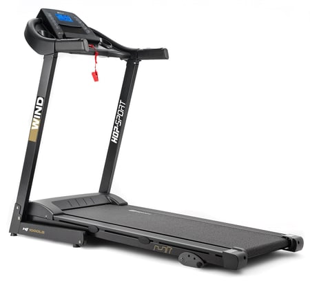 Tapis de course électrique pliable Wind HS-1000LB Gris avec 12 programmes d'entraînement et applications prédéfinis, entraînement respectueux des articulations.