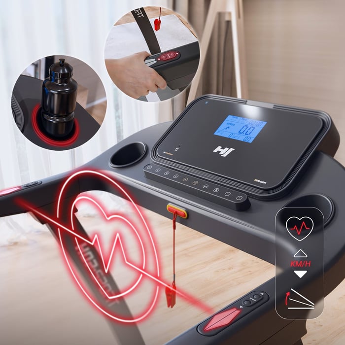 Le tapis de course électrique HS-2000LB Joger est un appareil moderne pour l’entraînement à domicile, alliant simplicité d’utilisation et multiples possibilités. L’ordinateur clair et intuitif affiche toutes les données essentielles, tandis que 15 programmes d’entraînement et la connectivité Bluetooth avec des applications compatibles telles que Kinomap, FitShow et Zwift vous permettent de vous entraîner comme vous le souhaitez - sur des parcours virtuels, avec des défis ou en toute liberté.