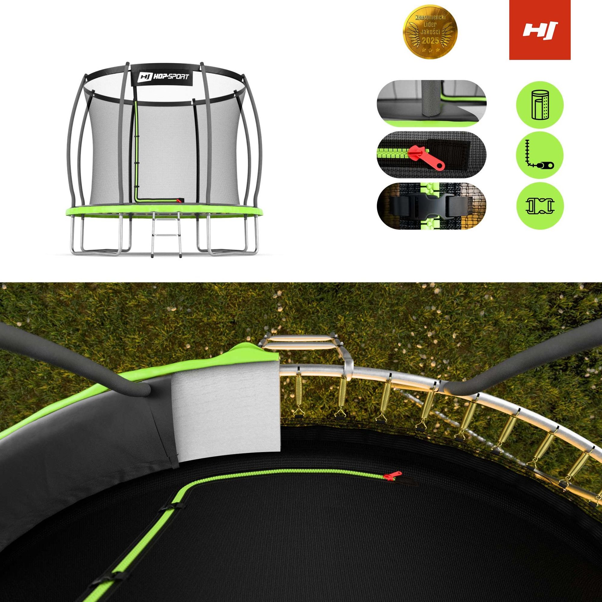 Le trampoline de jardin HS-PT08I de Hop-Sport est le choix parfait! Grâce à une finition de haute qualité, une construction stable et de nombreuses précautions de sécurité, vous pouvez profiter de sauts sans soucis dans un environnement confortable et sûr. Ce modèle présente un design attrayant et un filet de sécurité intérieur innovant de style «citrouille», qui augmente encore le confort lors de l'utilisation du trampoline.