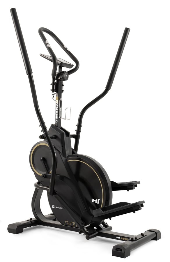 Avec le vélo elliptique HS-450B Dynamic, nous vous présentons un appareil de fitness unique qui combine deux fonctions en un seul équipement: celles d’un stepper et d’un elliptique. Son ordinateur d’entraînement intuitif affiche non seulement les calories brûlées, mais aussi la distance parcourue. Juste au-dessus, un support pour smartphone ou tablette vous permet de suivre du contenu tout en vous entraînant. Des capteurs de pulsation intégrés aux poignées mesurent votre fréquence cardiaque en temps réel et transmettent les données directement à l’écran. Plusieurs positions de prise en main sont possibles, afin de solliciter différentes zones musculaires selon vos préférences. Grâce au réglage manuel de la résistance, vous pouvez également adapter l’intensité de l’exercice à votre niveau personnel.