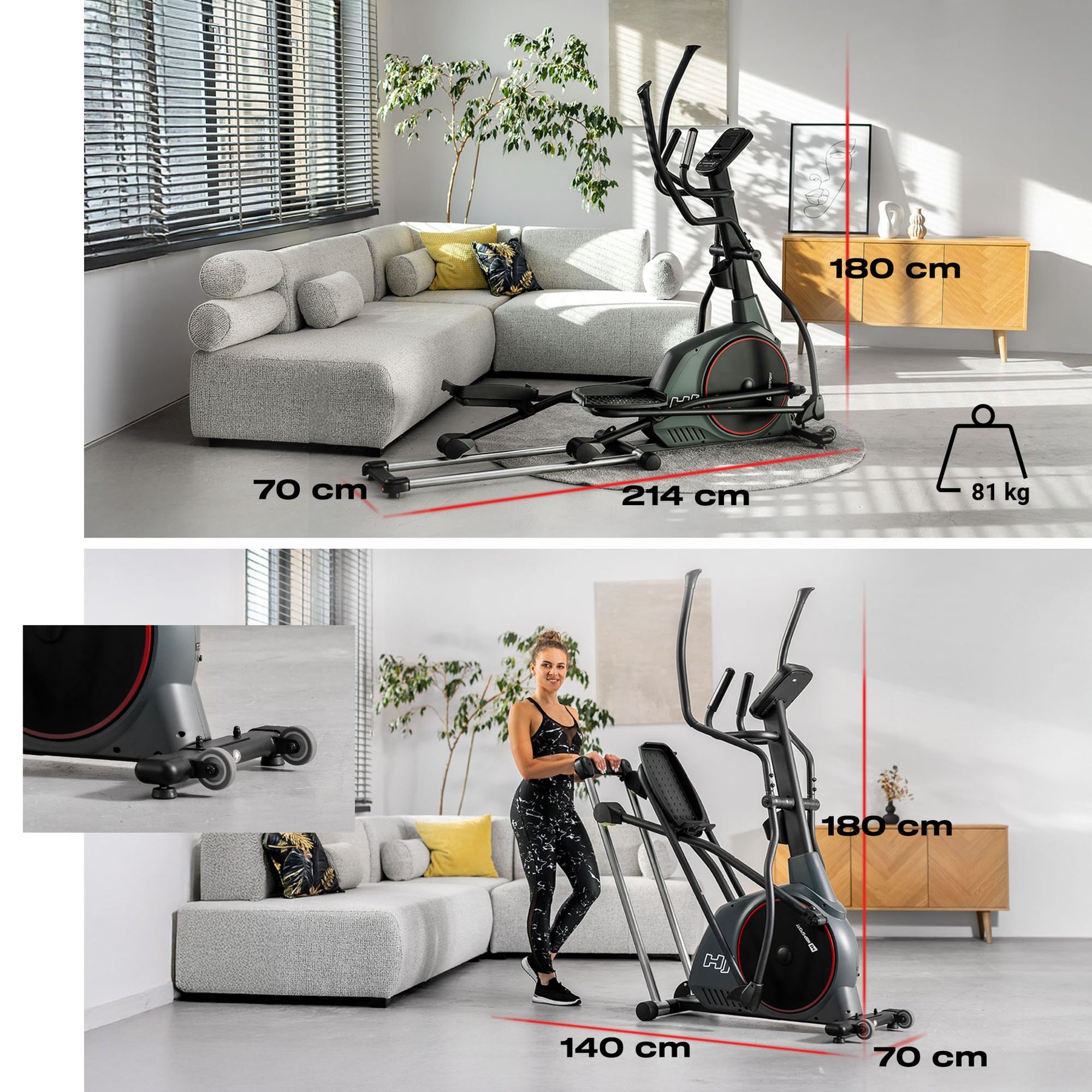 Le vélo elliptique électro-magnétique HS-095CF Prizm avec port USB, Bluetooth, avec programmes d'entraînement et compatible avec les applications mobiles.