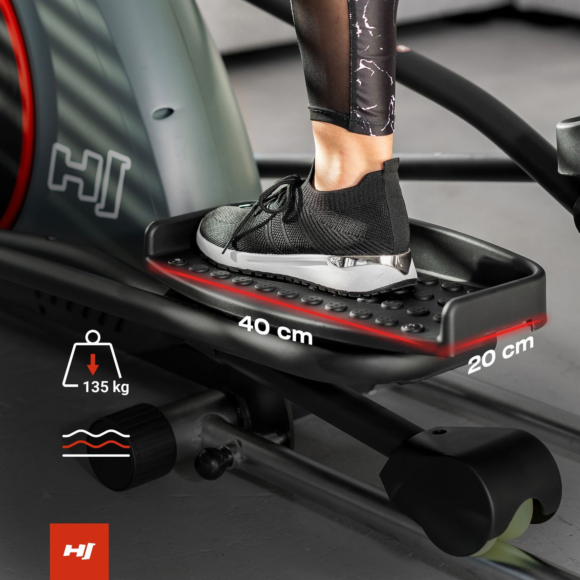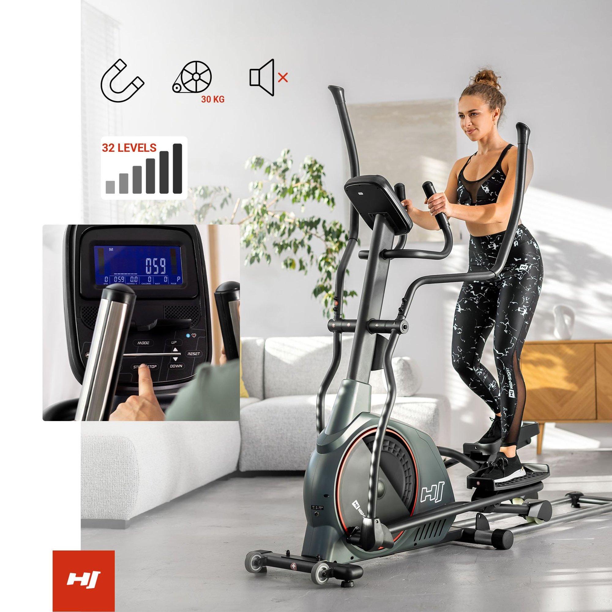 Le vélo elliptique HS-095CF Prizm est un nouvel appareil de Hop-Sport qui, grâce à sa construction robuste, permet un entraînement très intensif mais silencieux. L'ordinateur avec de nombreuses fonctions et programmes d'entraînement ainsi que la grande masse d'inertie de 30 kg sont parmi les avantages les plus importants de ce vélo elliptique.