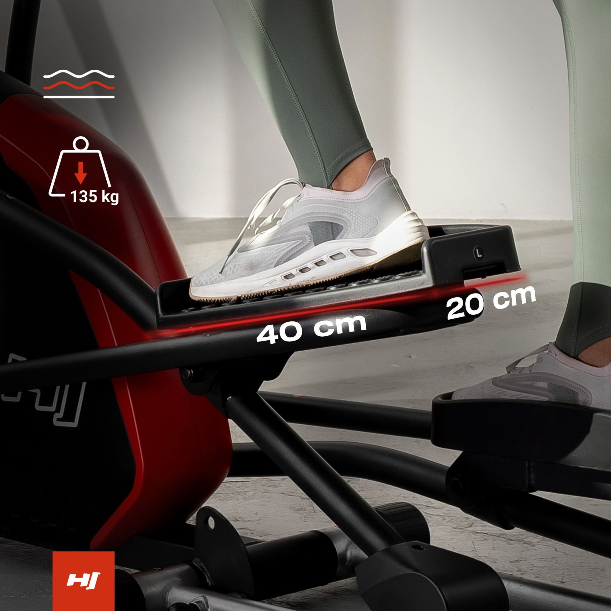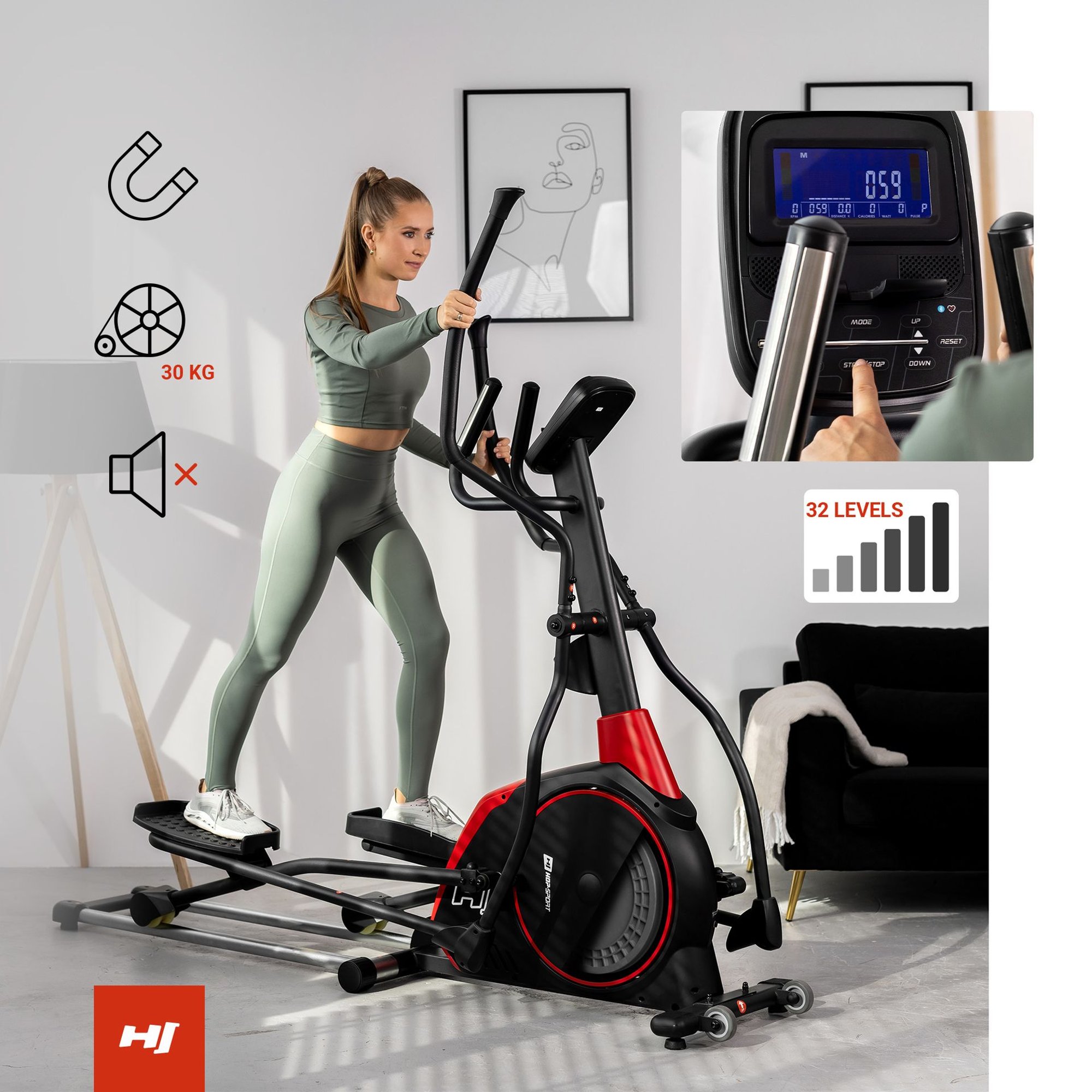 Le vélo elliptique HS-095CF Prizm est un nouvel appareil de Hop-Sport qui, grâce à sa construction robuste, permet un entraînement très intensif mais silencieux. L'ordinateur avec de nombreuses fonctions et programmes d'entraînement ainsi que la grande masse d'inertie de 30 kg sont parmi les avantages les plus importants de ce vélo elliptique.